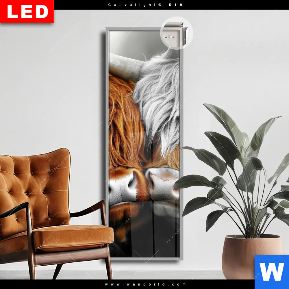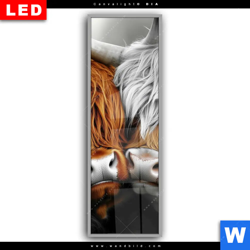 Canvalight® DIA Leuchtbild | Hochlandrinder - Harmonie der Natur | Schmal