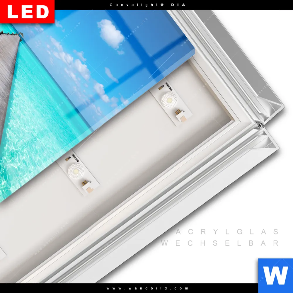 LED-Glasbild mit austauschbarem Acrylglas-Druck (Wechselbild)