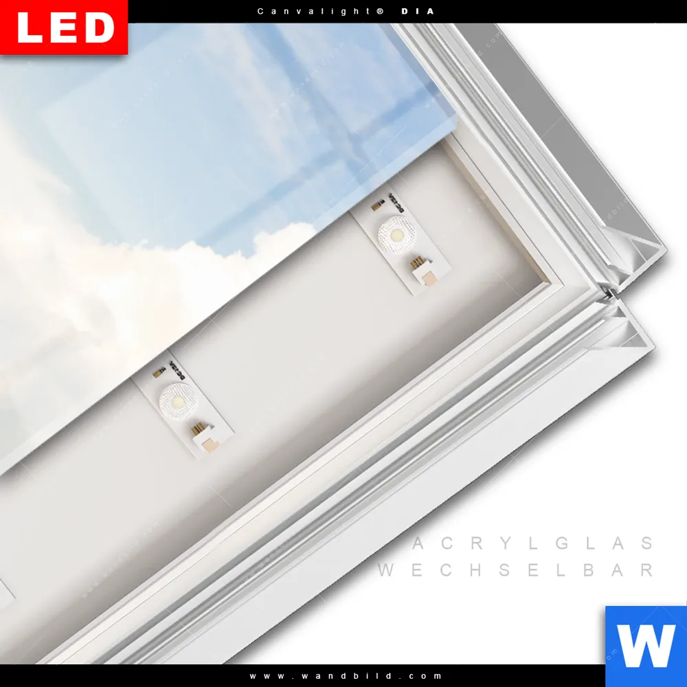 LED-Glasbild mit austauschbarem Acrylglas-Druck (Wechselbild)
