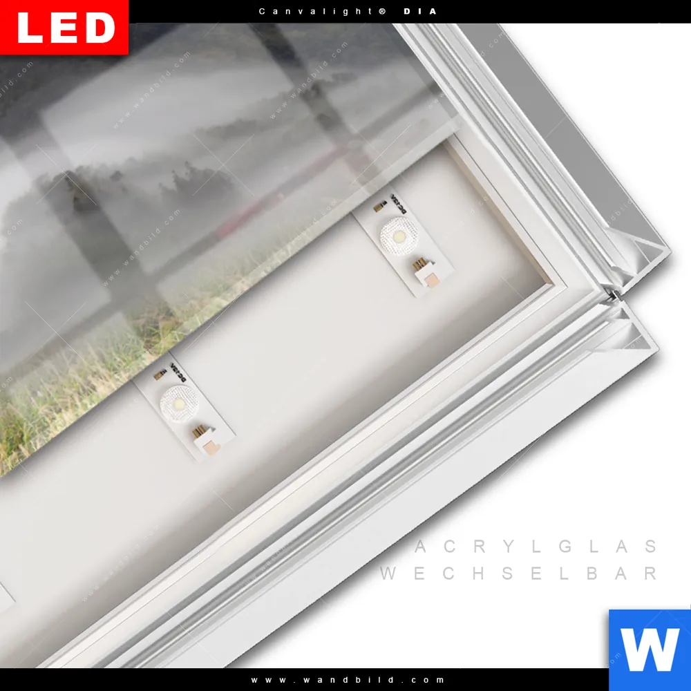 LED-Glasbild mit austauschbarem Acrylglas-Druck (Wechselbild)
