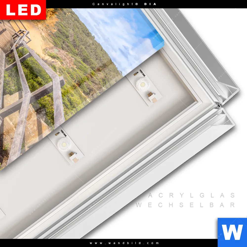LED-Glasbild mit austauschbarem Acrylglas-Druck (Wechselbild)