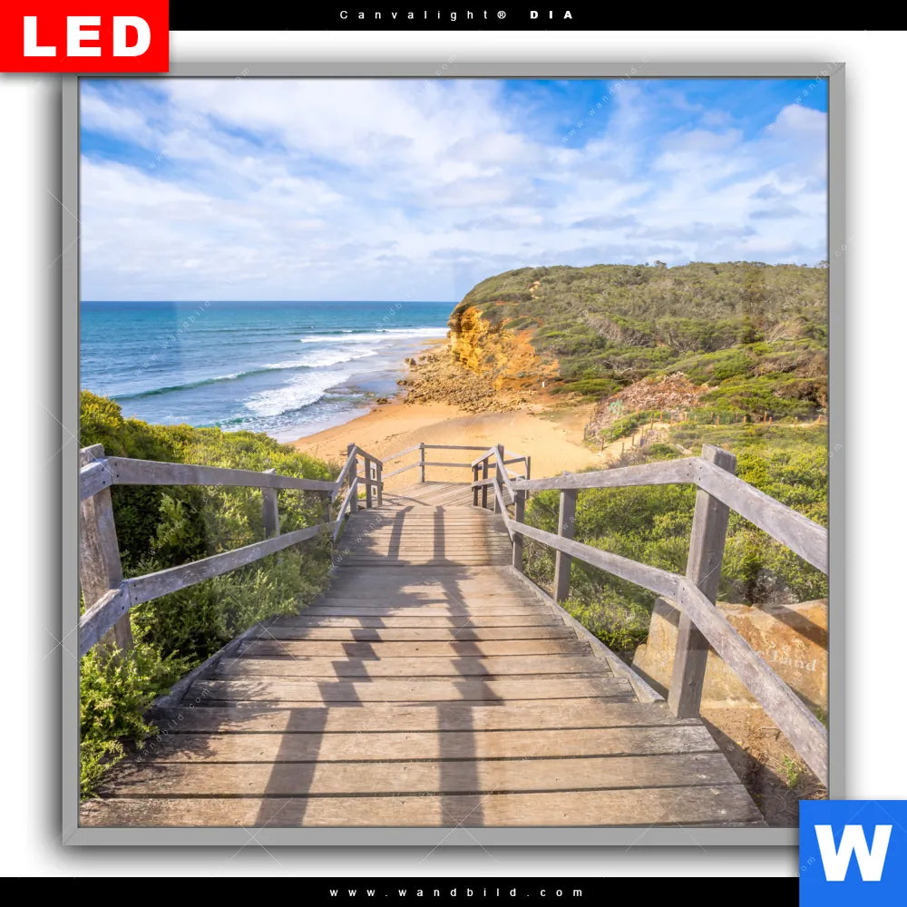 Canvalight® DIA Leuchtbild | Holztreppe zum einsamen Strand | Quadrat