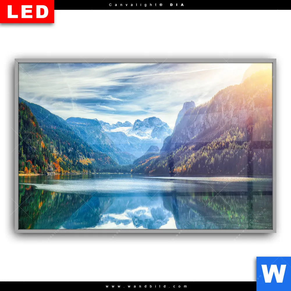 Canvalight® DIA Leuchtbild | Idyllischer Bergsee im Gebirge | Querformat