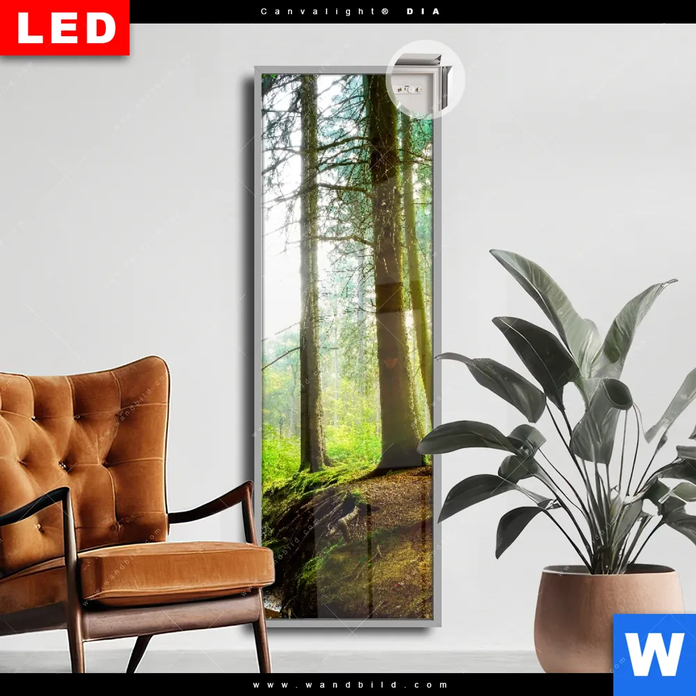 Canvalight® DIA Leuchtbild | Idyllischer Wald bei Sonnenaufgang | Schmal