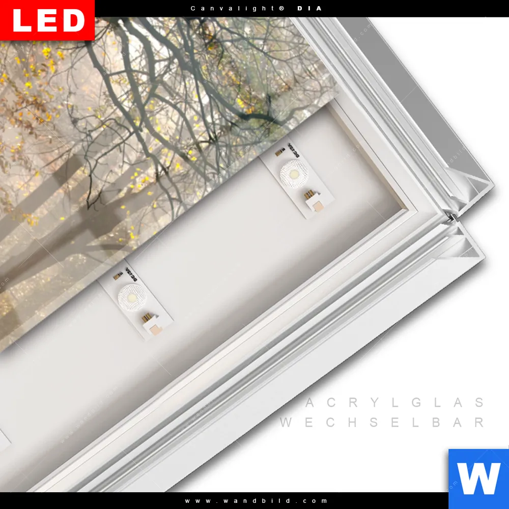 LED-Glasbild mit austauschbarem Acrylglas-Druck (Wechselbild)
