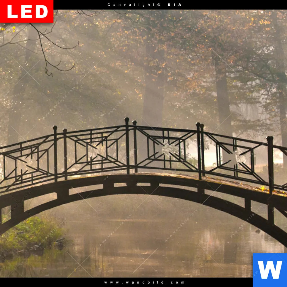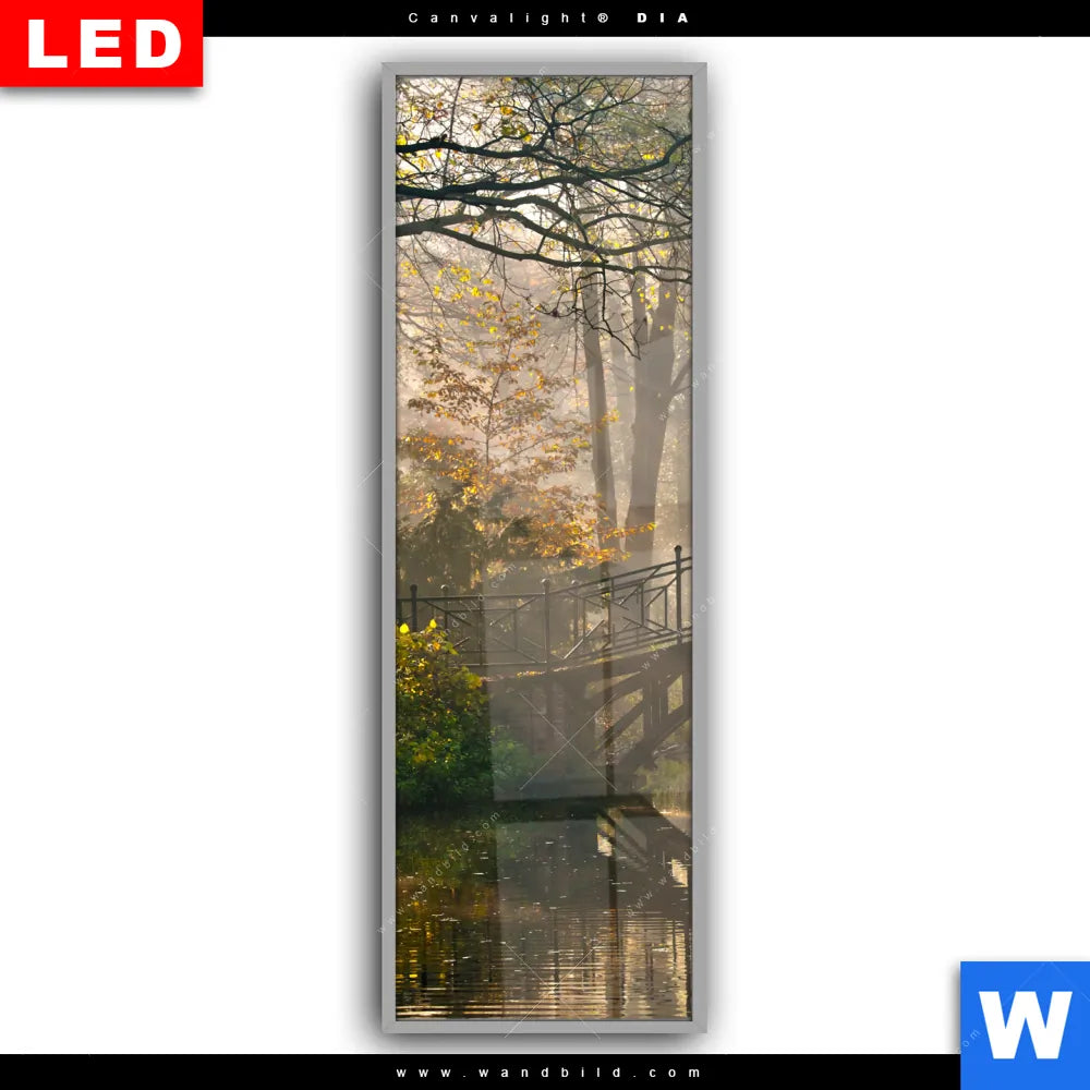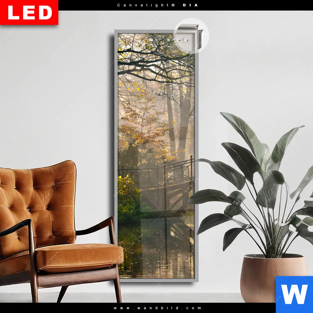 Canvalight® DIA Leuchtbild | Idyllischer Wald mit Brücke | Schmal