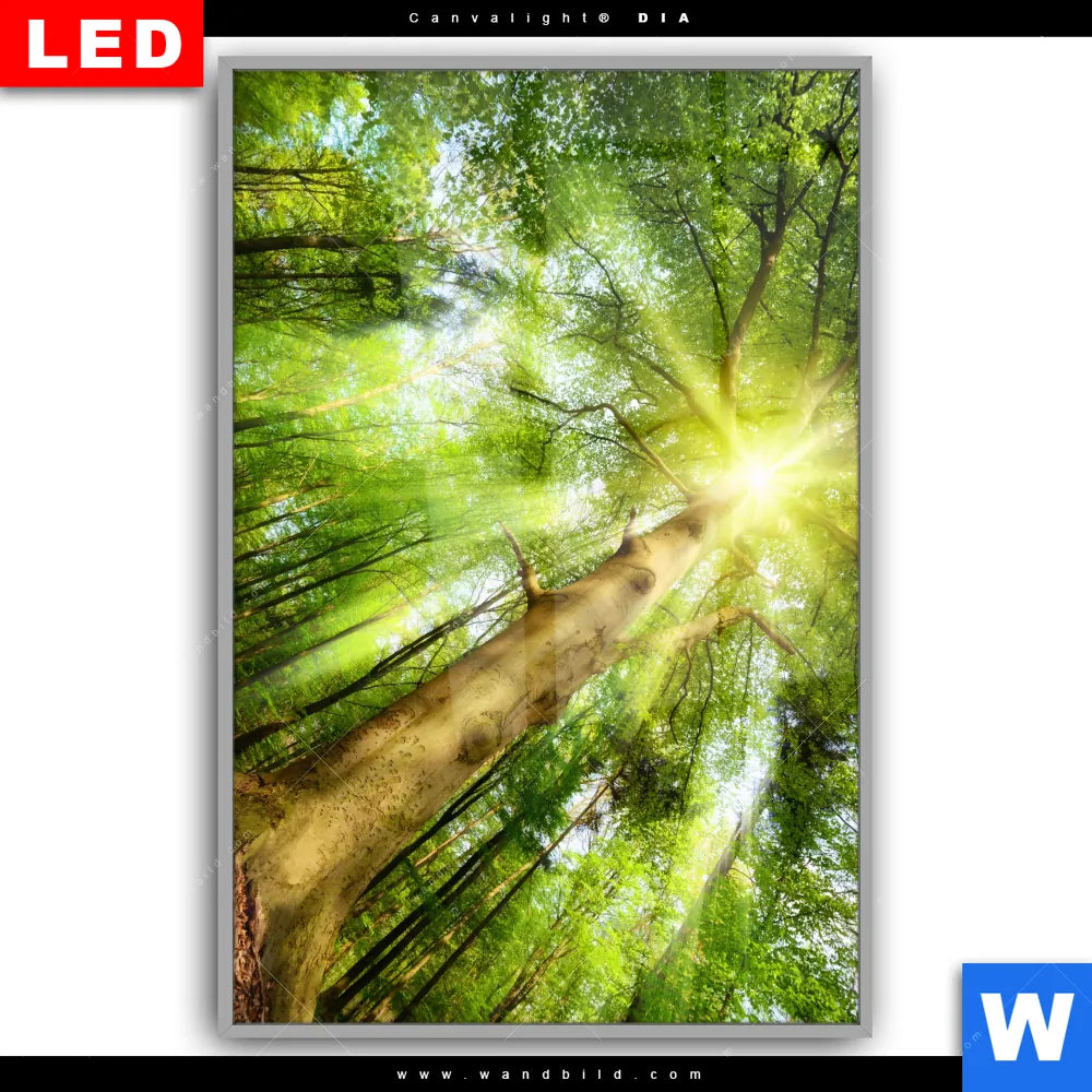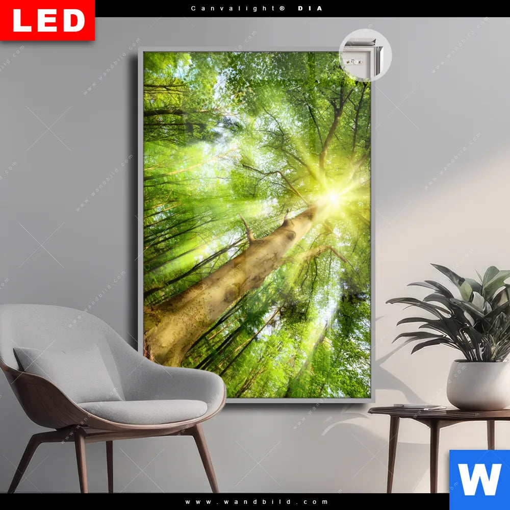 Canvalight® DIA Leuchtbild | Im frischen grünen Wald | Hochformat