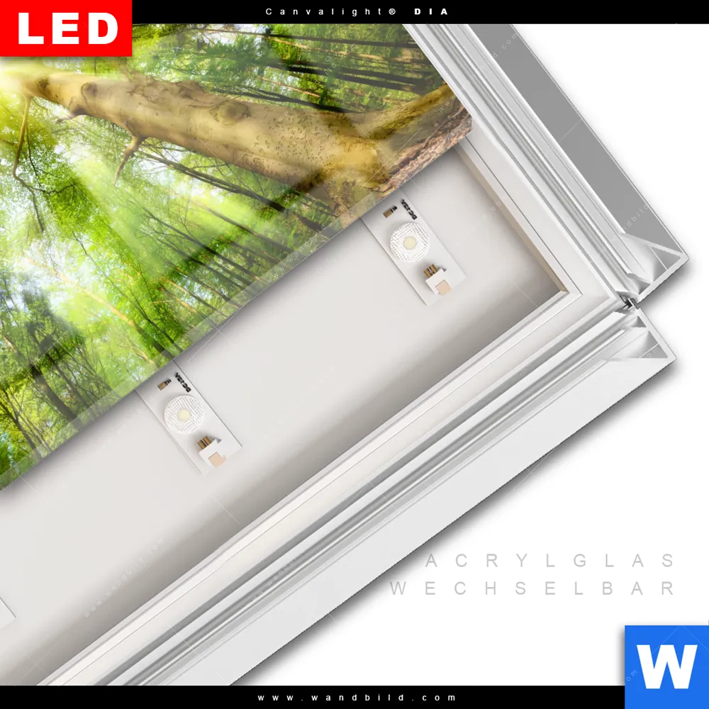 LED-Glasbild mit austauschbarem Acrylglas-Druck (Wechselbild)