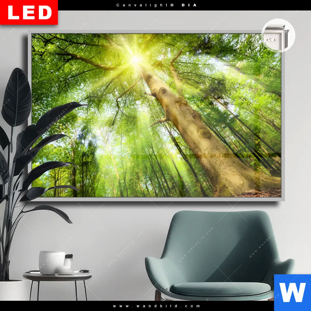Canvalight® DIA Leuchtbild | Im frischen grünen Wald | Querformat