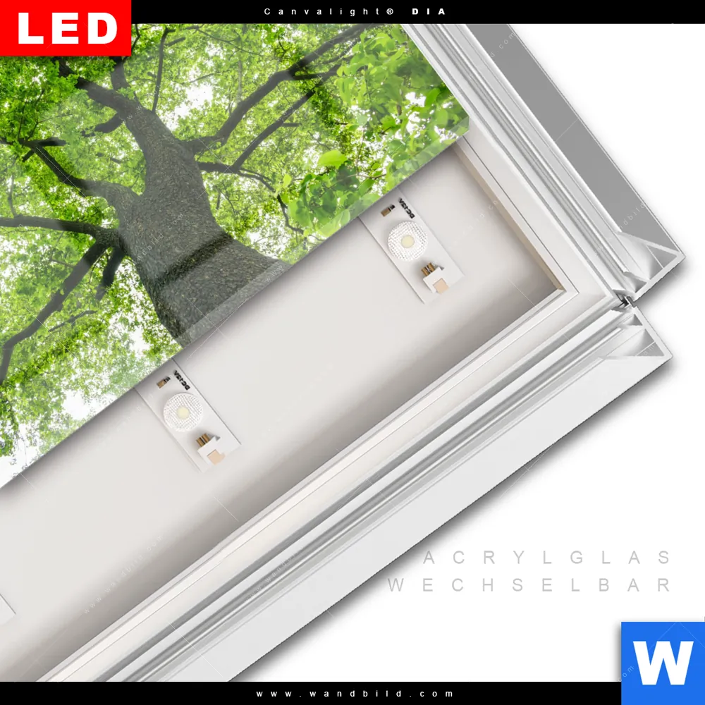 LED-Glasbild mit austauschbarem Acrylglas-Druck (Wechselbild)