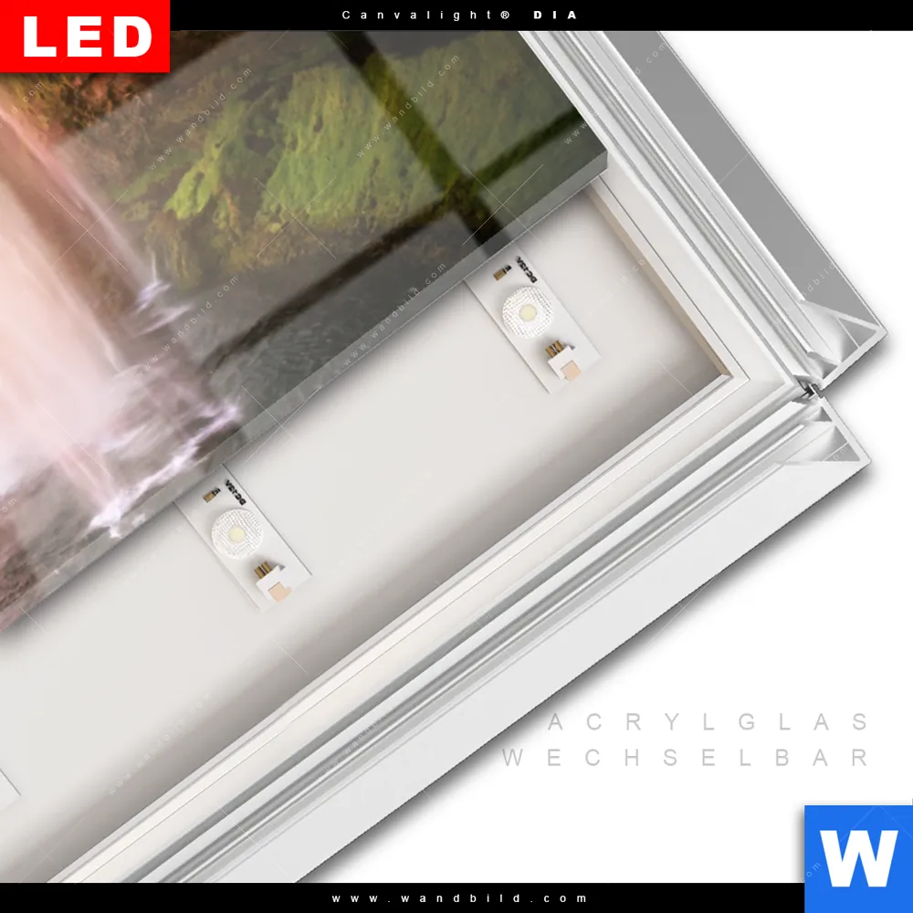 LED-Glasbild mit austauschbarem Acrylglas-Druck (Wechselbild)
