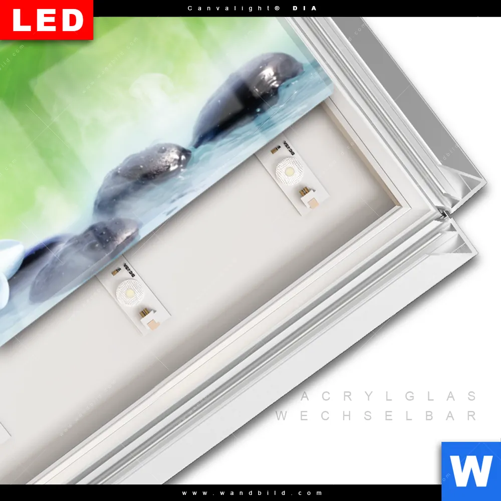 LED-Glasbild mit austauschbarem Acrylglas-Druck (Wechselbild)