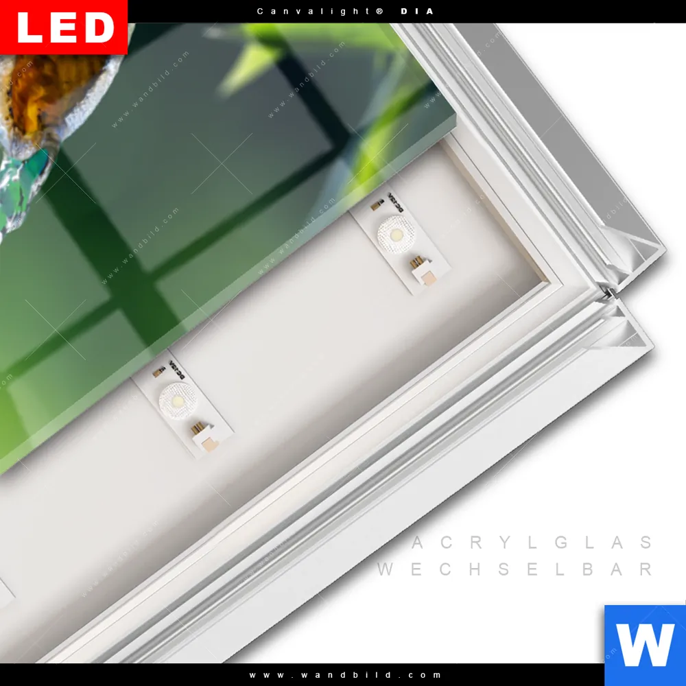 LED-Glasbild mit austauschbarem Acrylglas-Druck (Wechselbild)