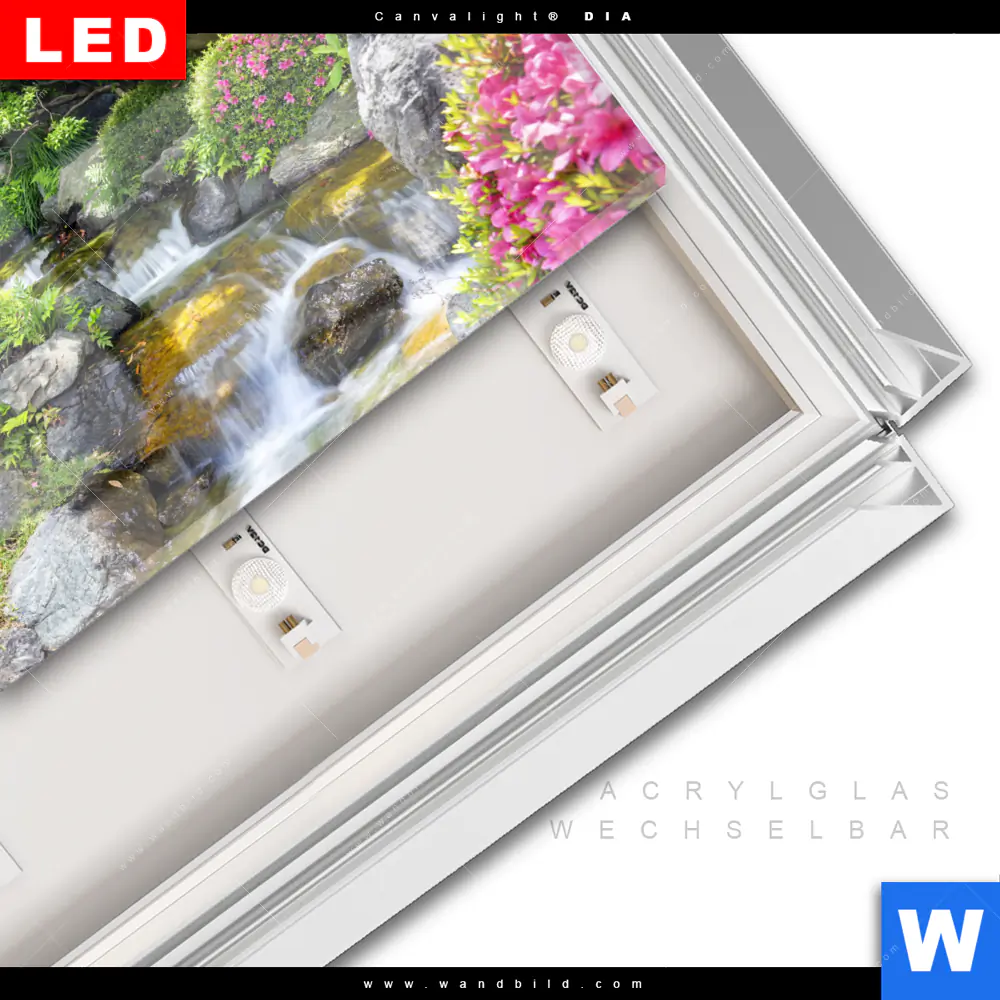 LED-Glasbild mit austauschbarem Acrylglas-Druck (Wechselbild)