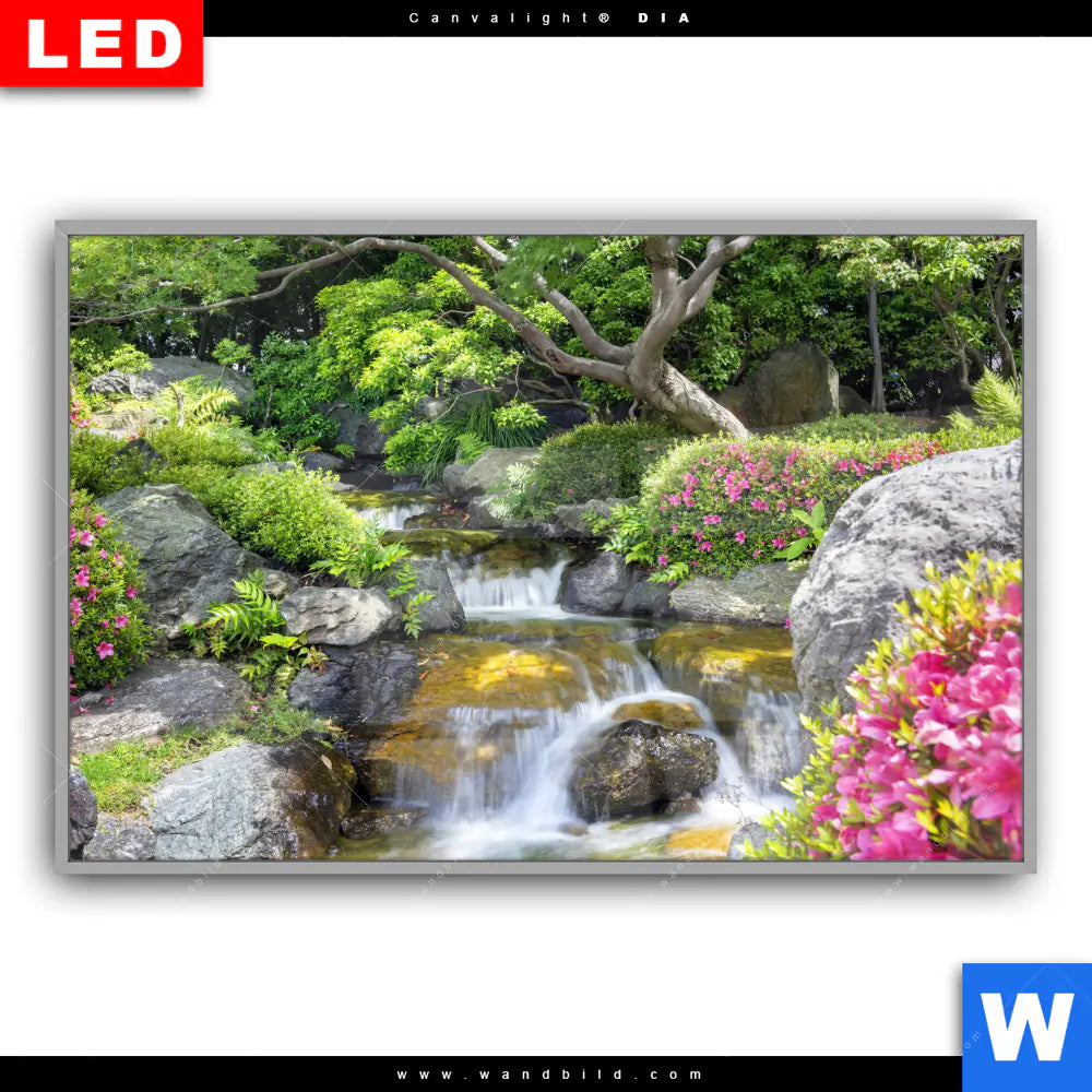 Canvalight® DIA Leuchtbild | Japanischer Garten mit Wasserlauf | Querformat