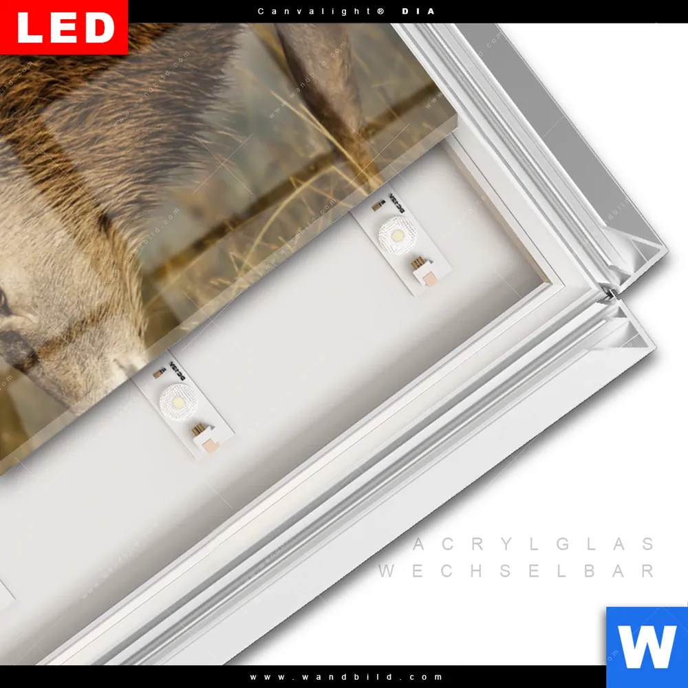 LED-Glasbild mit austauschbarem Acrylglas-Druck (Wechselbild)