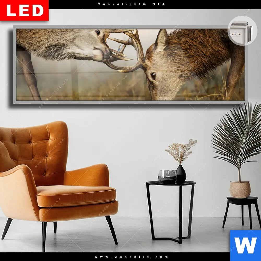 Canvalight® DIA Leuchtbild | Kämpfende Hirsche | Panorama