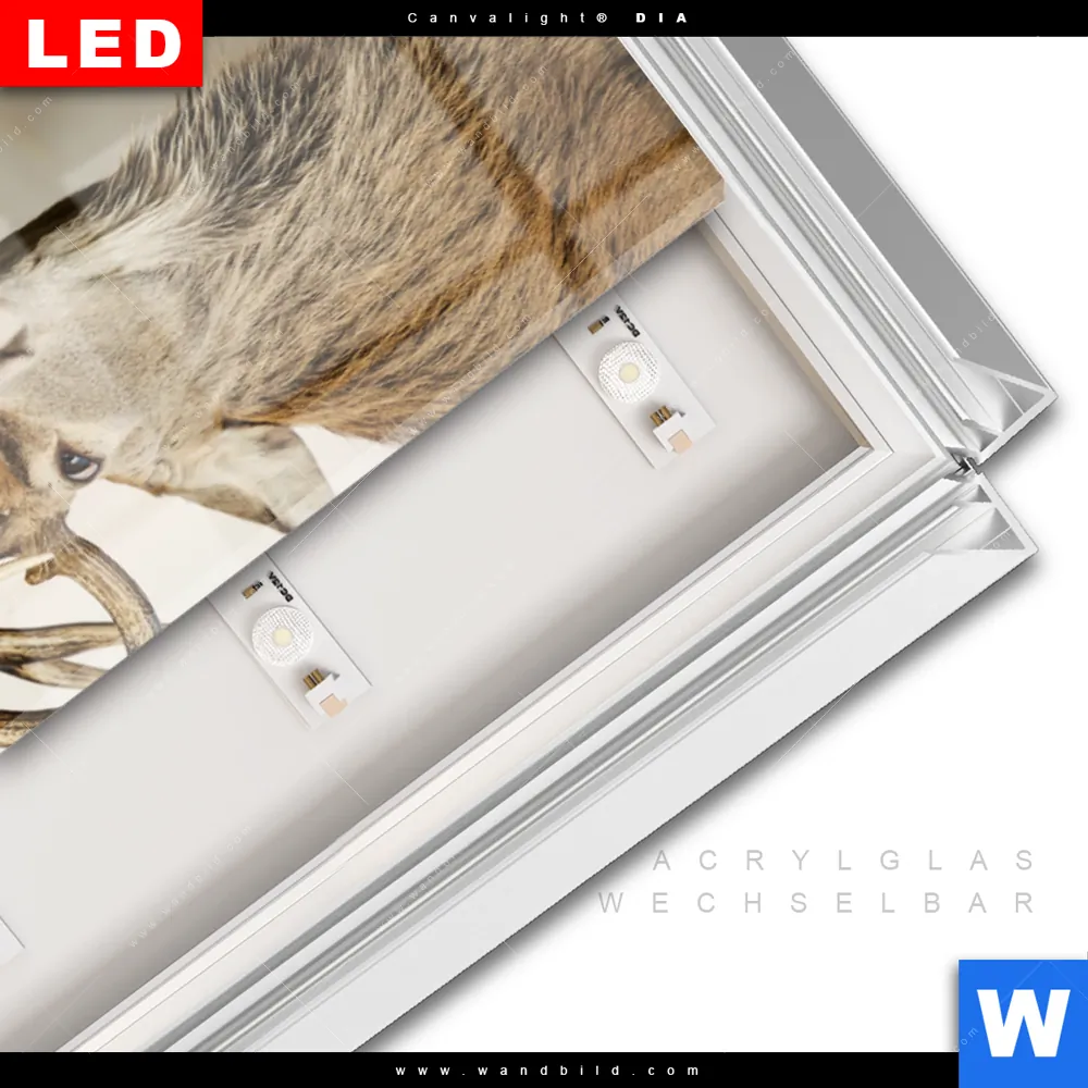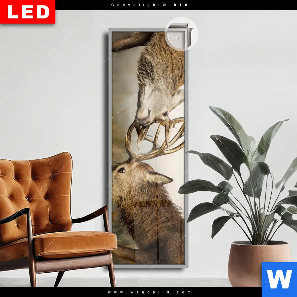 Canvalight® DIA Leuchtbild | Kämpfende Hirsche | Schmal