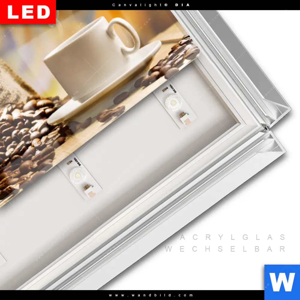 LED-Glasbild mit austauschbarem Acrylglas-Druck (Wechselbild)