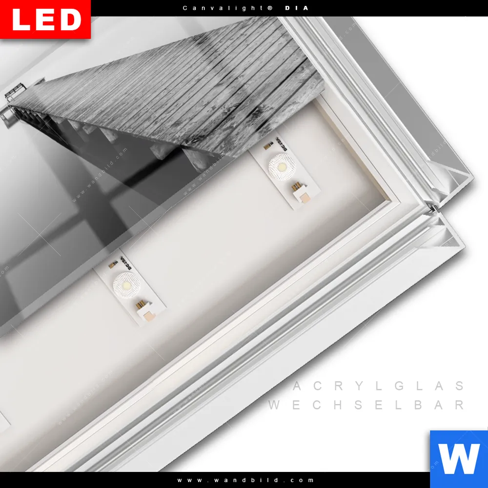 LED-Glasbild mit austauschbarem Acrylglas-Druck (Wechselbild)