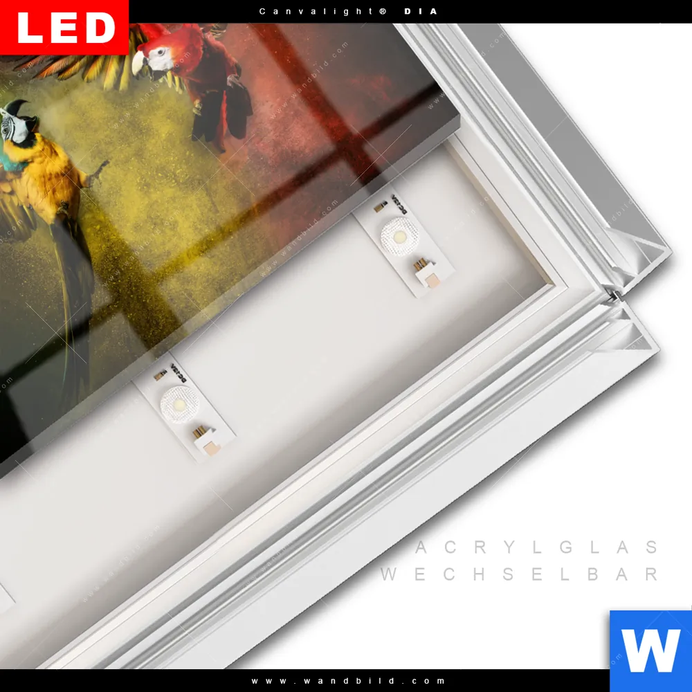 LED-Glasbild mit austauschbarem Acrylglas-Druck (Wechselbild)