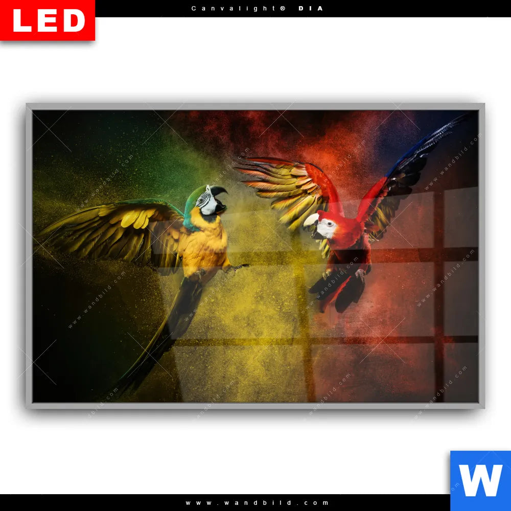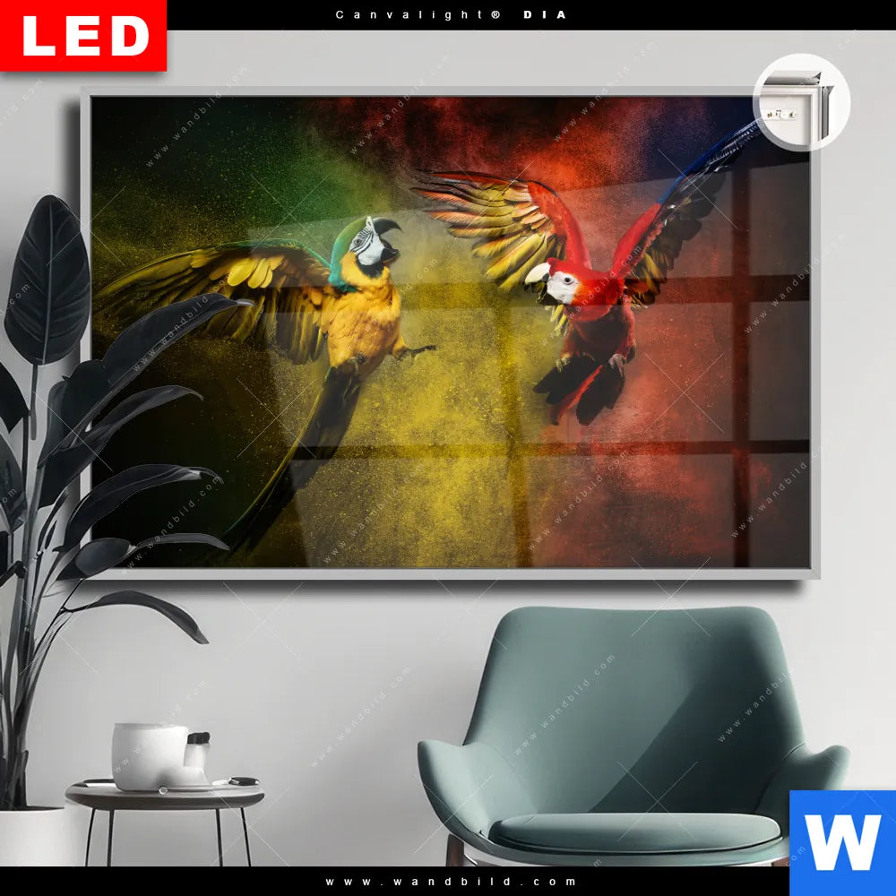 Canvalight® DIA Leuchtbild | Kampf der Papageien | Querformat