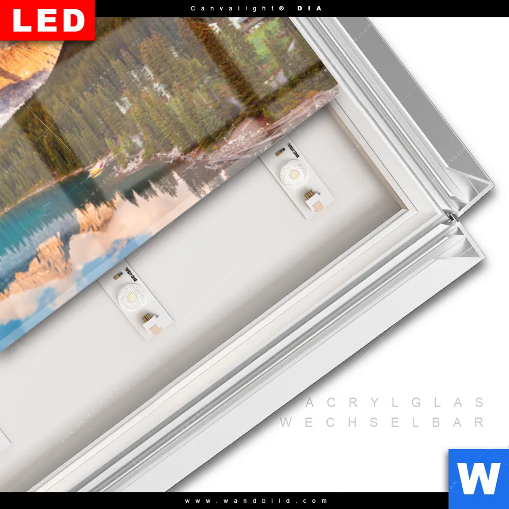 LED-Glasbild mit austauschbarem Acrylglas-Druck (Wechselbild)