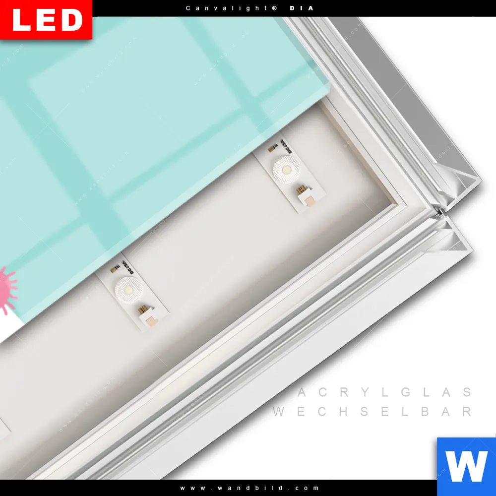 LED-Glasbild mit austauschbarem Acrylglas-Druck (Wechselbild)