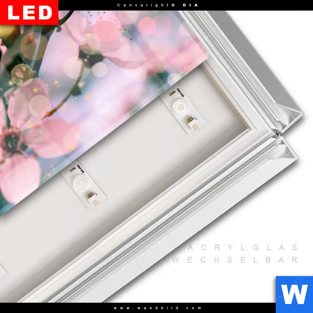 LED-Glasbild mit austauschbarem Acrylglas-Druck (Wechselbild)