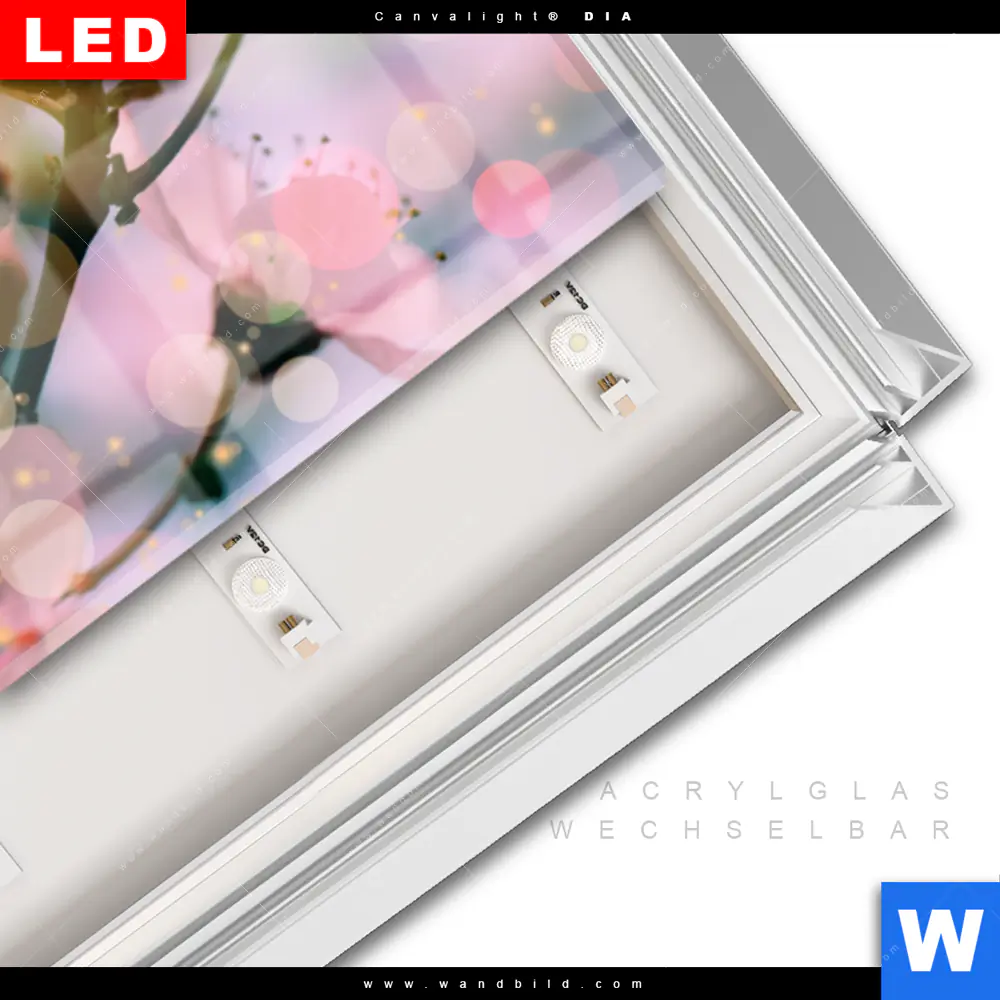 LED-Glasbild mit austauschbarem Acrylglas-Druck (Wechselbild)