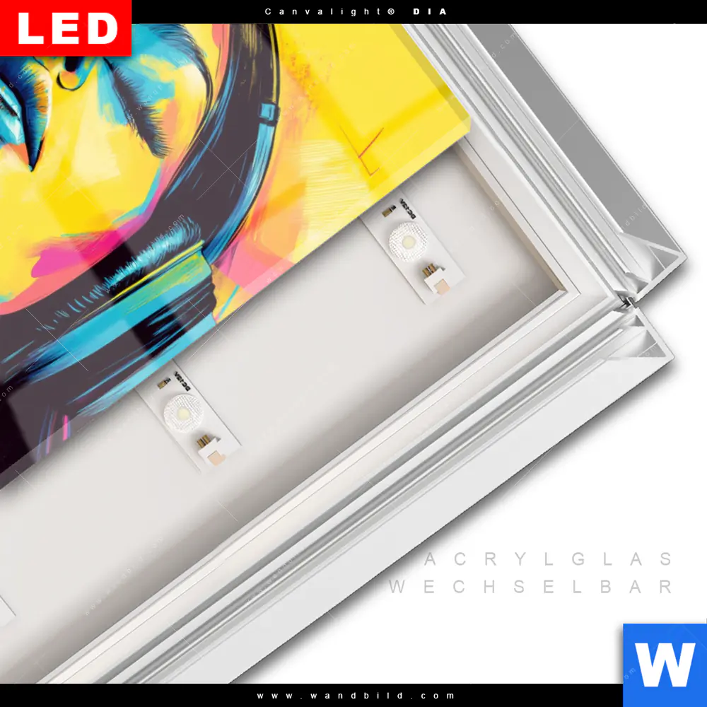 LED-Glasbild mit austauschbarem Acrylglas-Druck (Wechselbild)