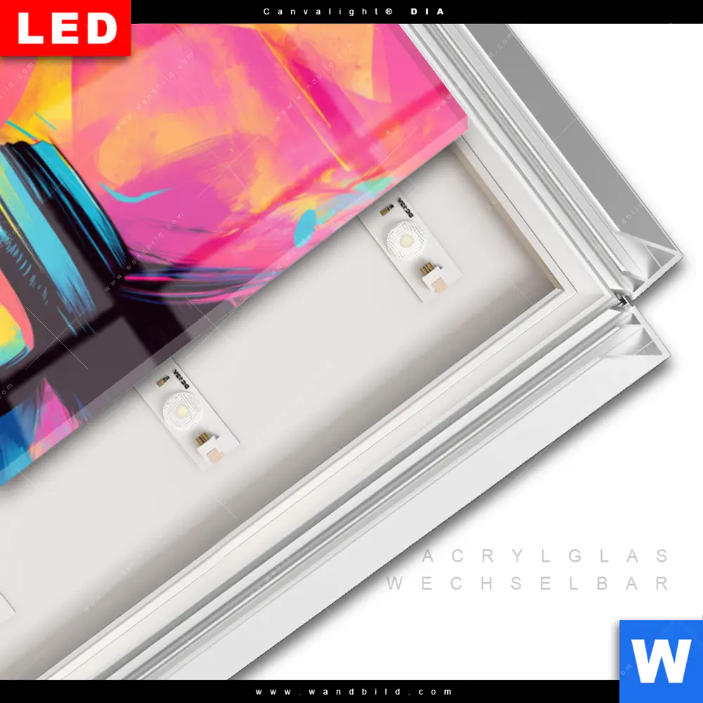 LED-Glasbild mit austauschbarem Acrylglas-Druck (Wechselbild)