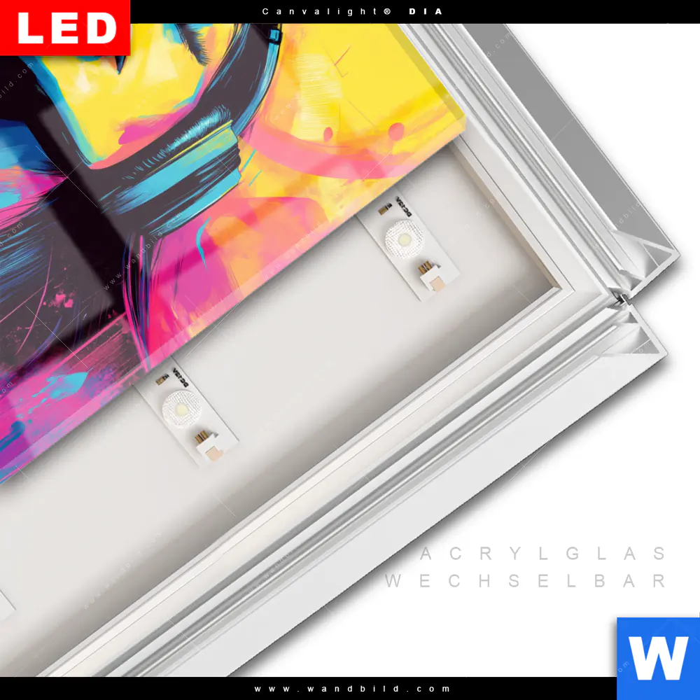 LED-Glasbild mit austauschbarem Acrylglas-Druck (Wechselbild)
