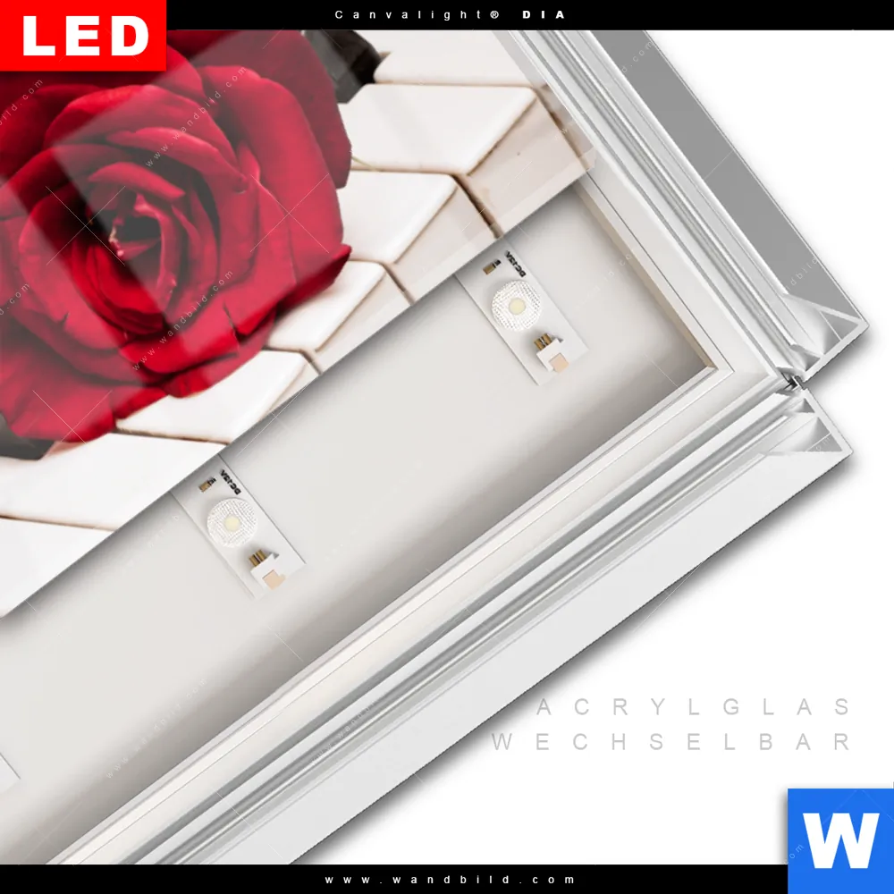 Leuchtbild Acrylglas Canvalight® DIA | Klavier & Rose | Panorama