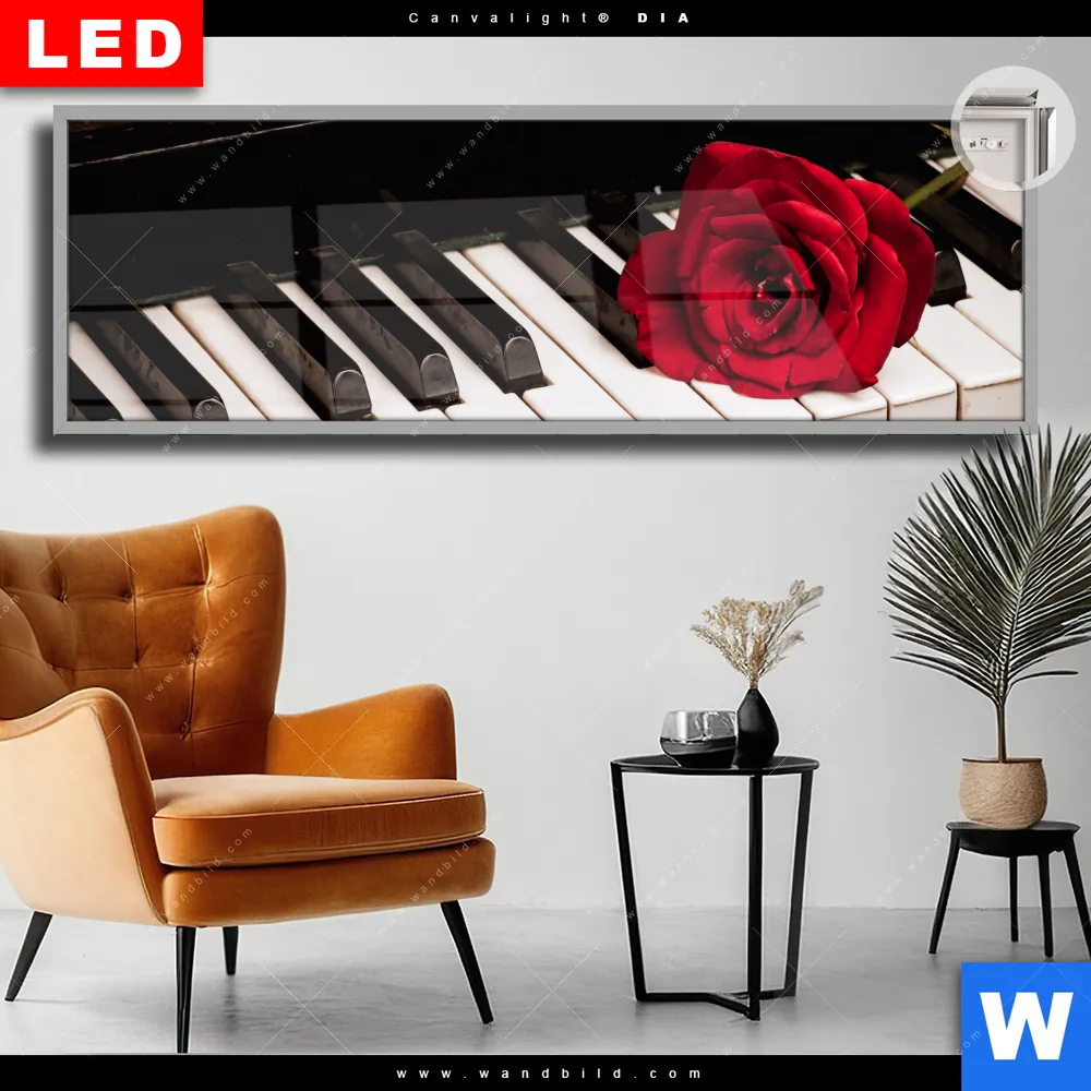 Canvalight® DIA Leuchtbild | Klavier & Rose | Panorama
