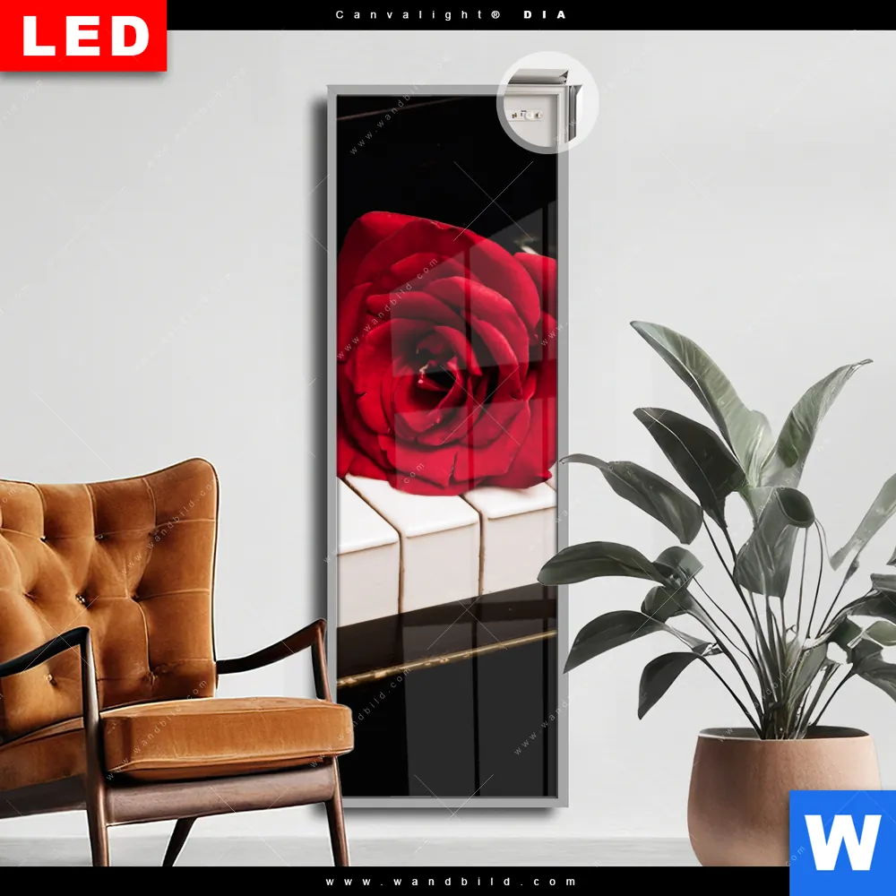 Canvalight® DIA Leuchtbild | Klavier & Rose | Schmal