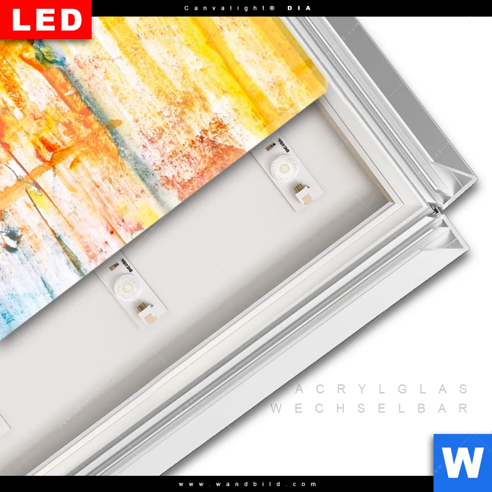 LED-Glasbild mit austauschbarem Acrylglas-Druck (Wechselbild)