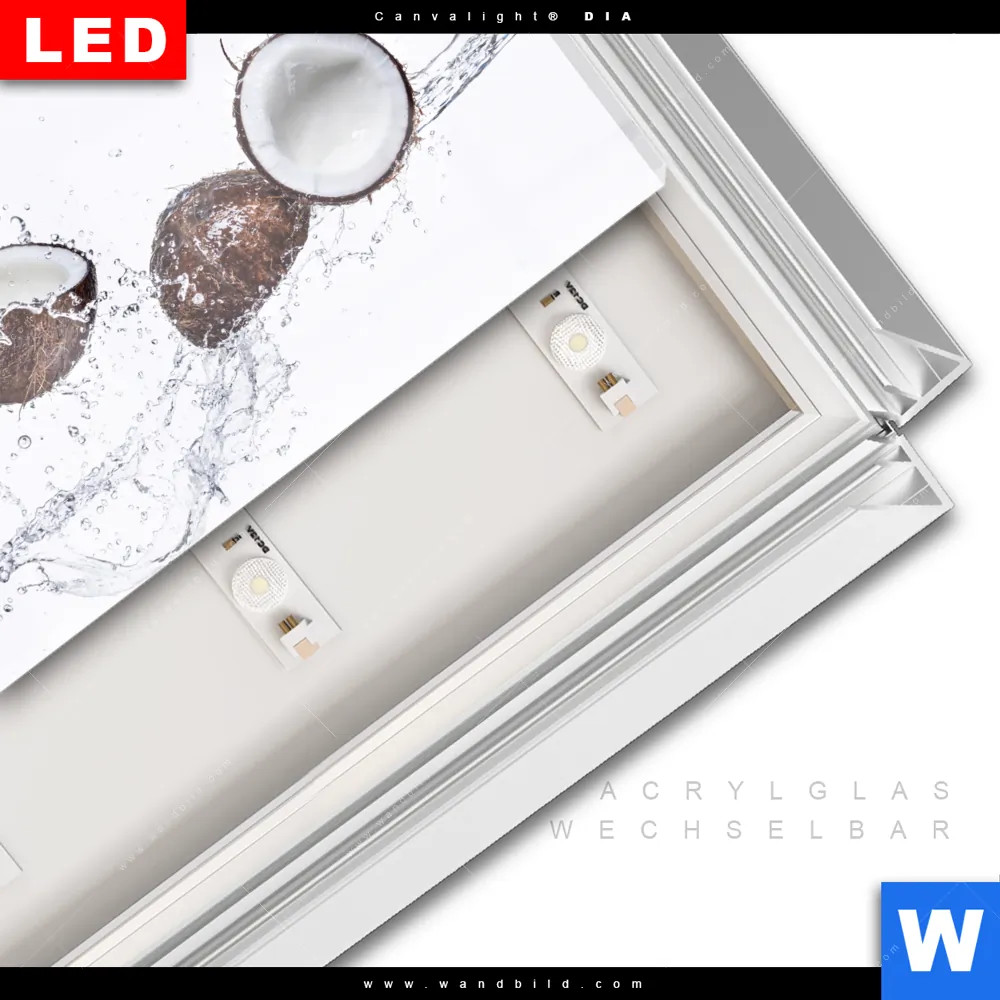Canvalight® DIA Leuchtbild | Kokosnüsse mit Wasserspritzer | Querformat