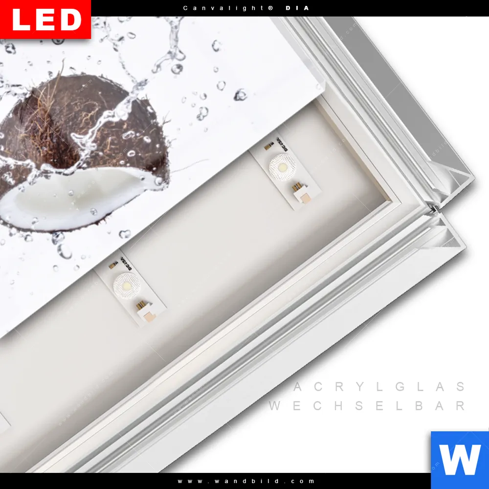 Canvalight® DIA Leuchtbild | Kokosnüsse mit Wasserspritzer | Schmal