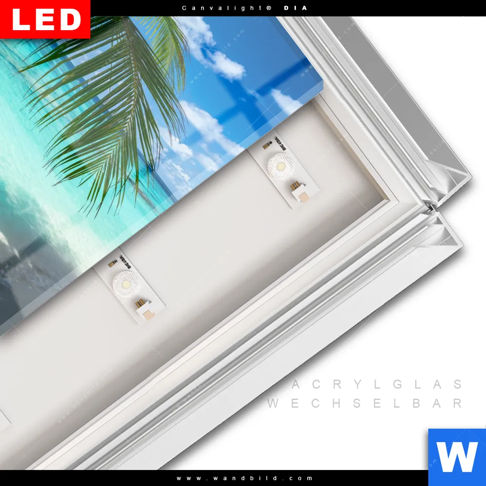 LED-Glasbild mit austauschbarem Acrylglas-Druck (Wechselbild)