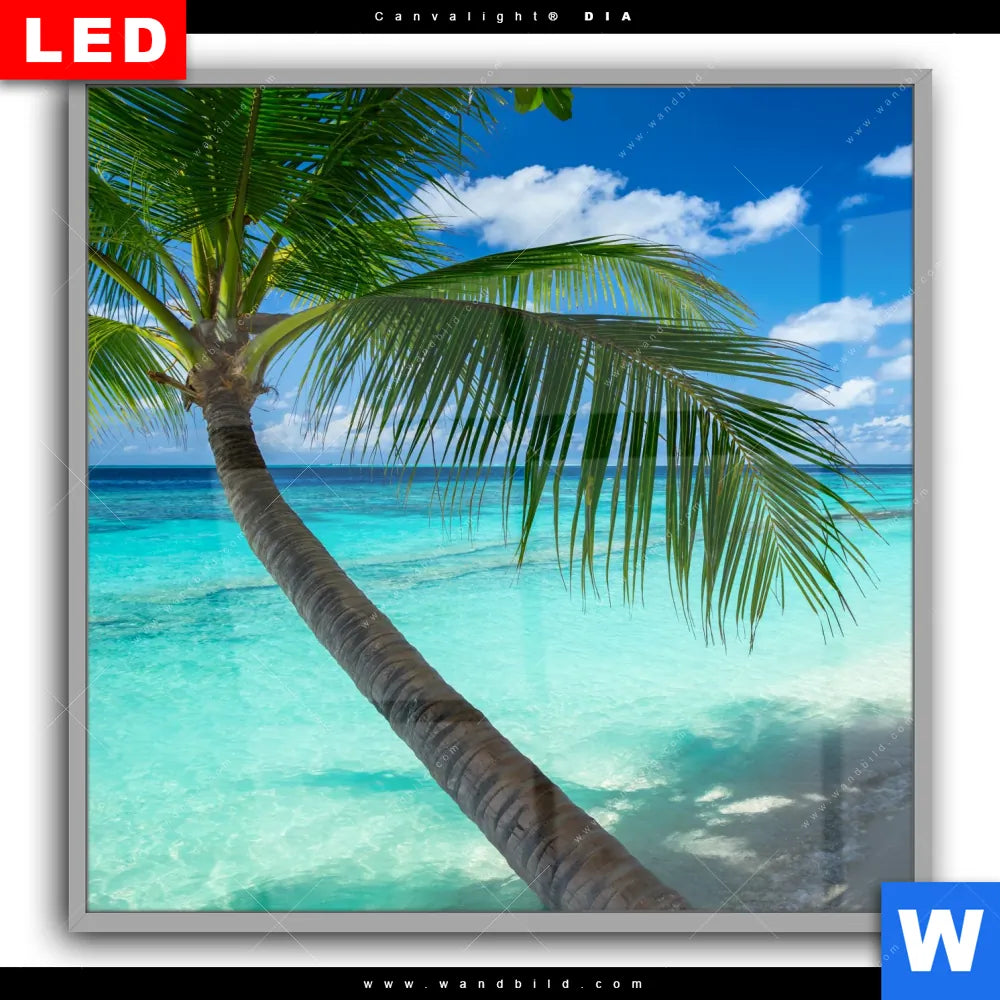 Canvalight® DIA Leuchtbild | Kokospalme am Strand | Quadrat