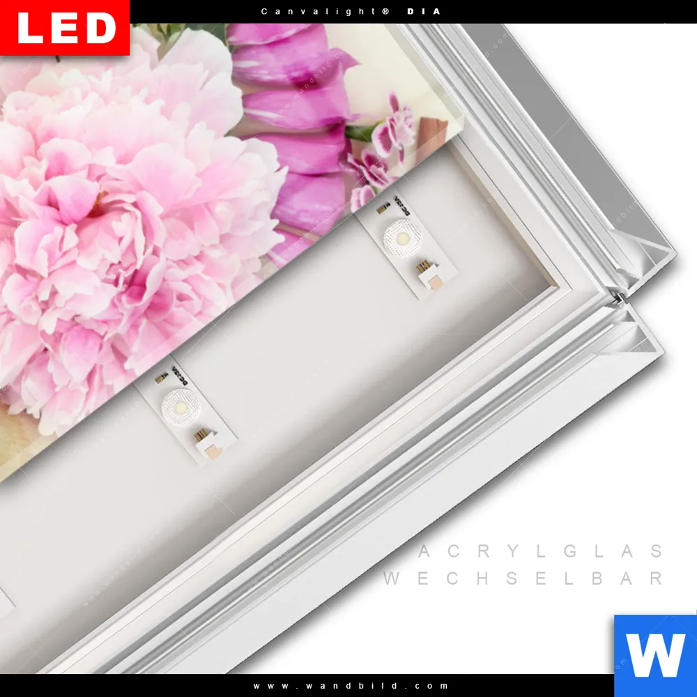 LED-Glasbild mit austauschbarem Acrylglas-Druck (Wechselbild)