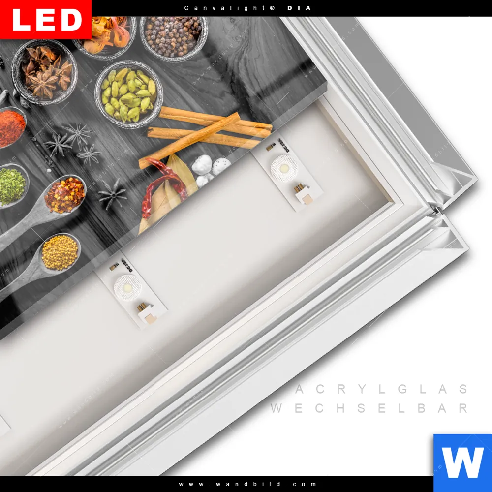 LED-Glasbild mit austauschbarem Acrylglas-Druck (Wechselbild)