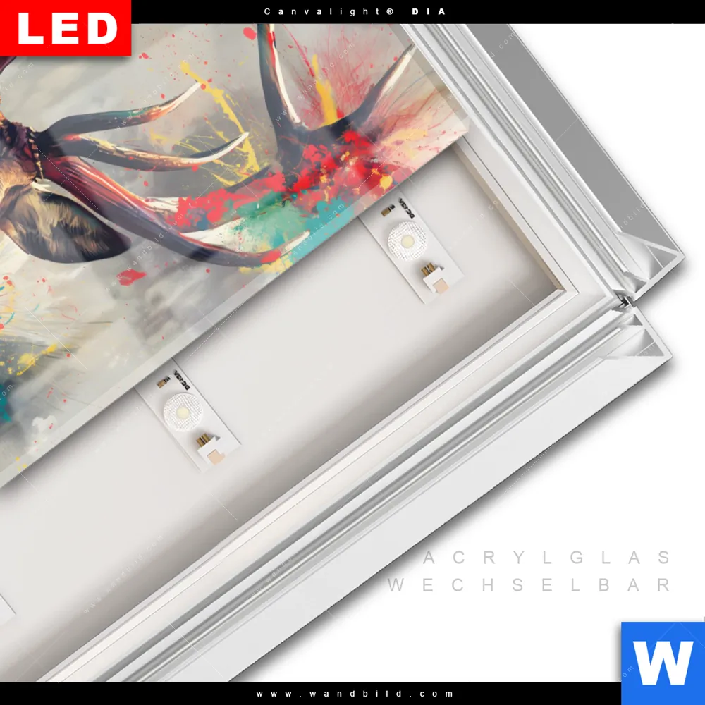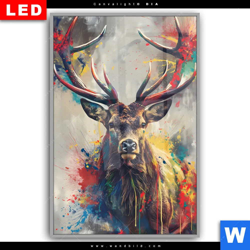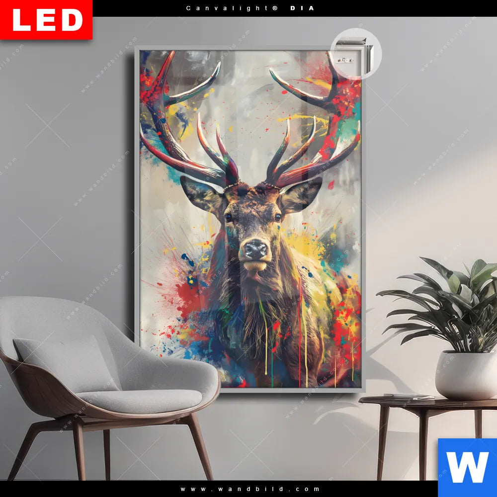 Canvalight® DIA Leuchtbild | Kreativer Hirsch mit Farbspritzern | Hochformat