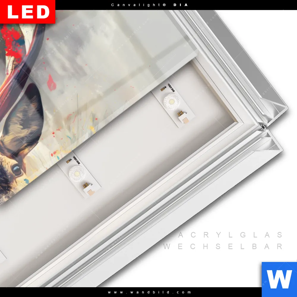 LED-Glasbild mit austauschbarem Acrylglas-Druck (Wechselbild)