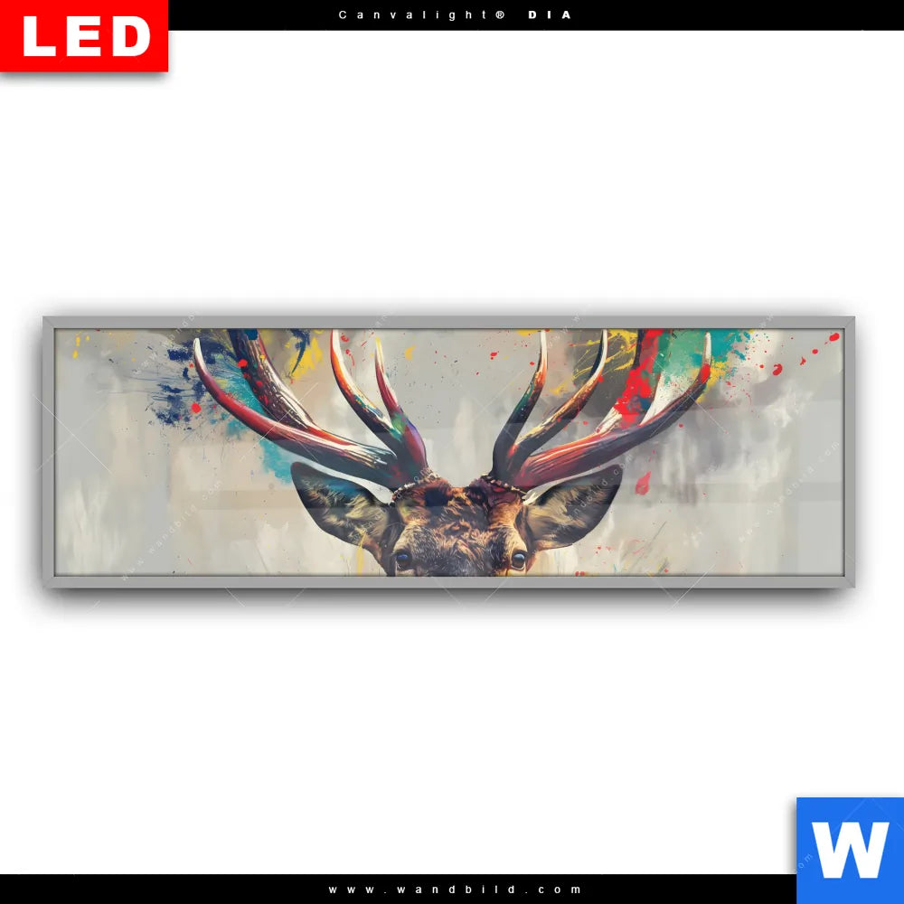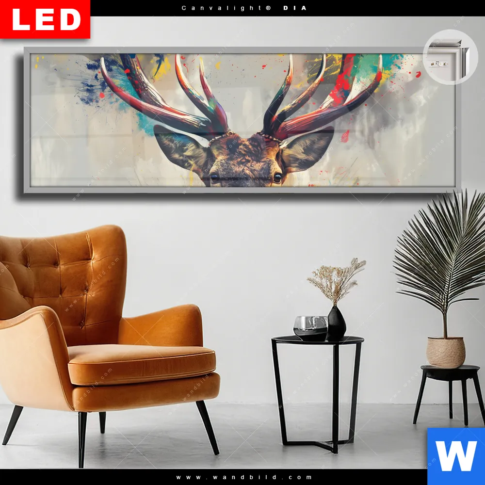 Canvalight® DIA Leuchtbild | Kreativer Hirsch mit Farbspritzern | Panorama