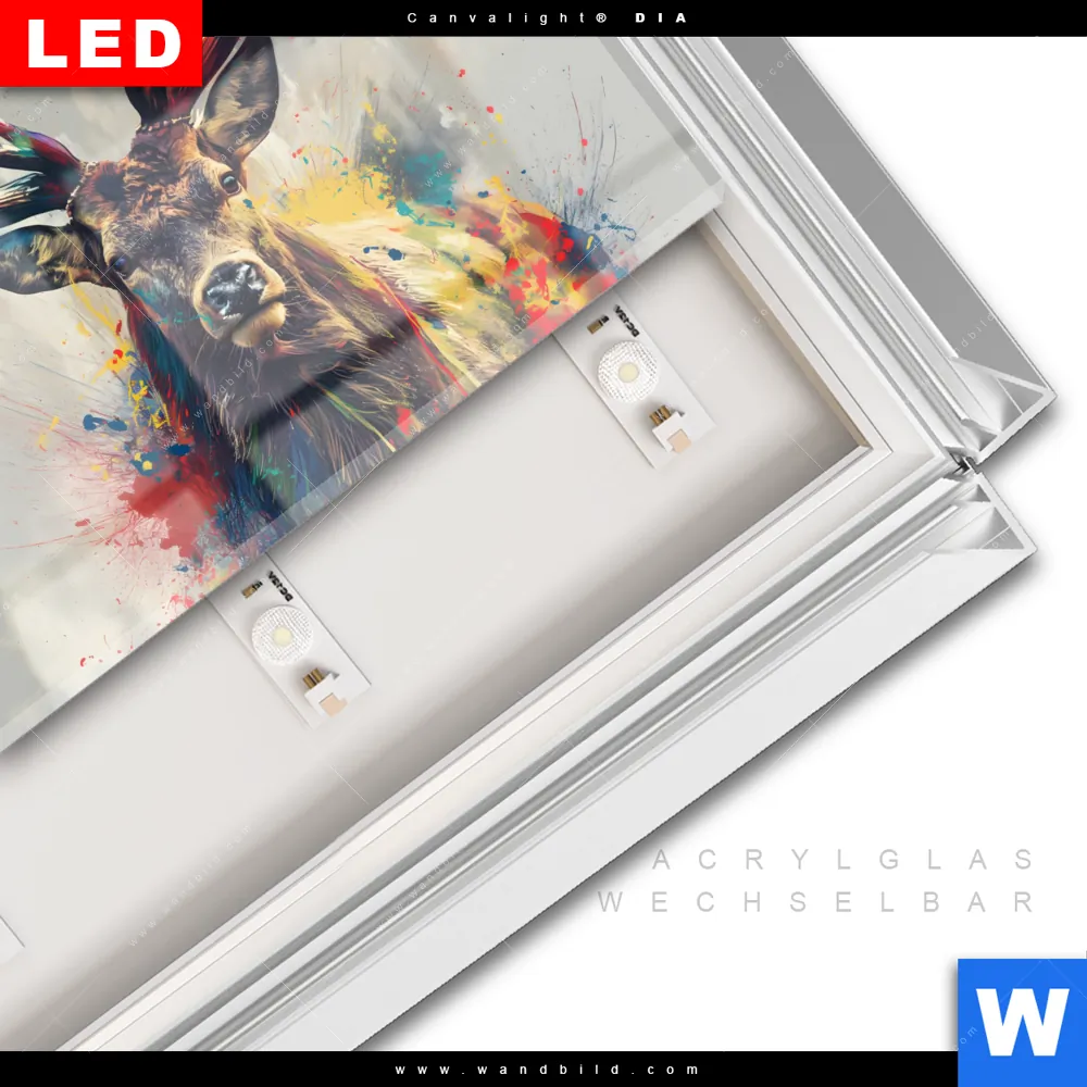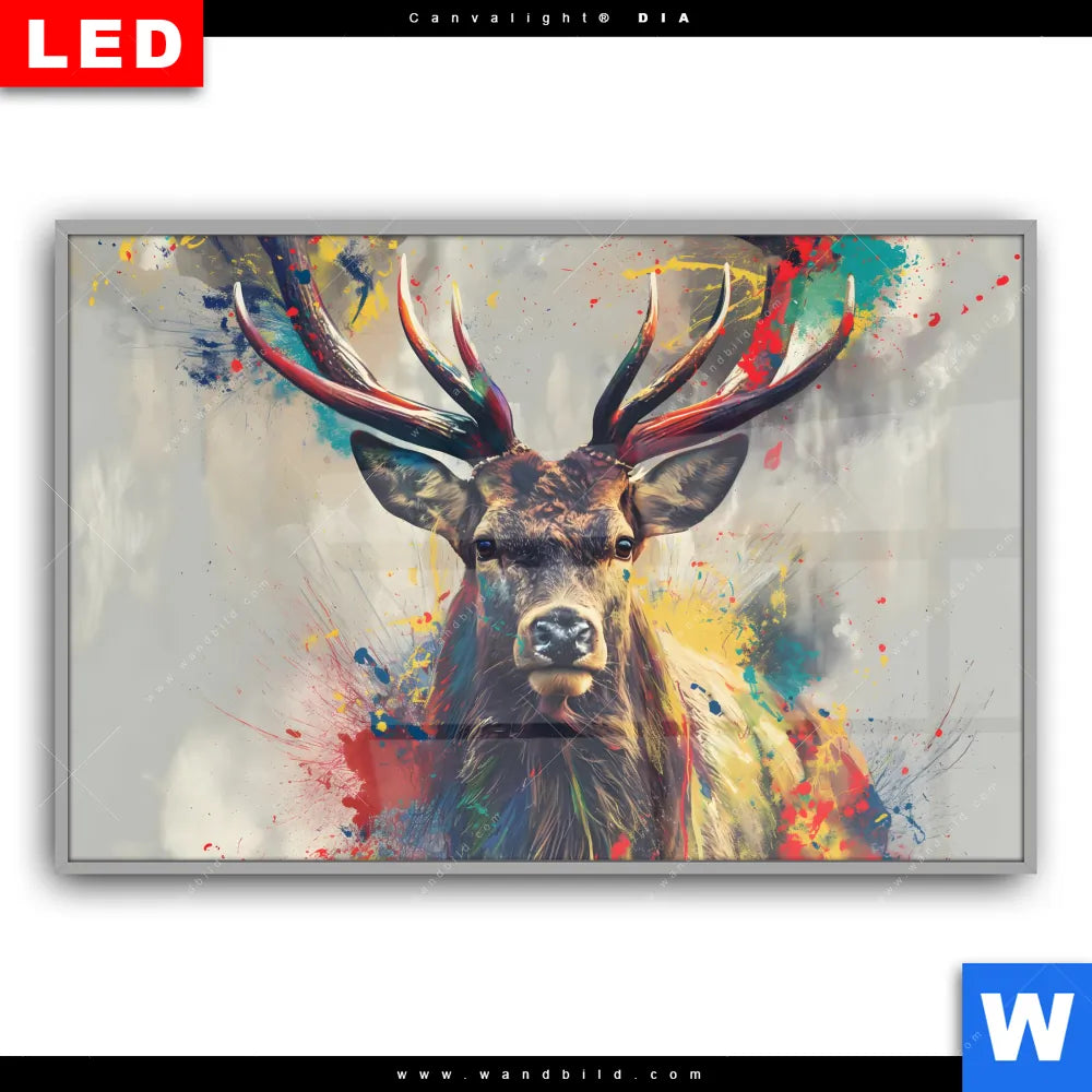 Canvalight® DIA Leuchtbild | Kreativer Hirsch mit Farbspritzern | Querformat