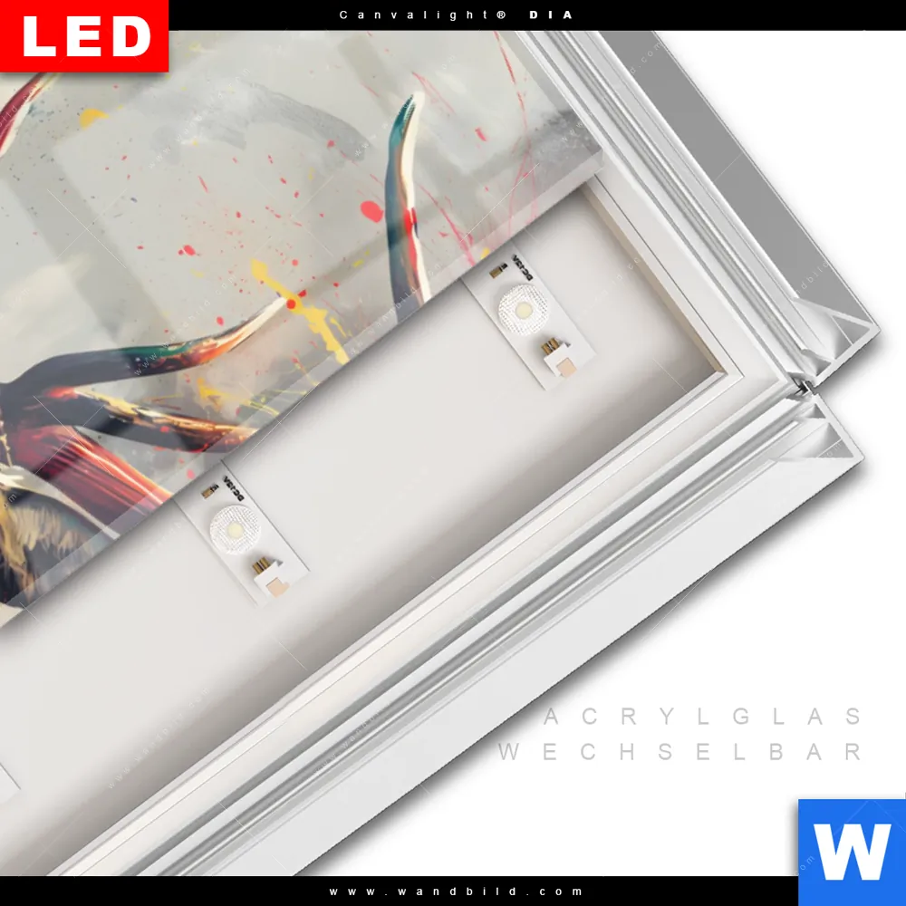 LED-Glasbild mit austauschbarem Acrylglas-Druck (Wechselbild)