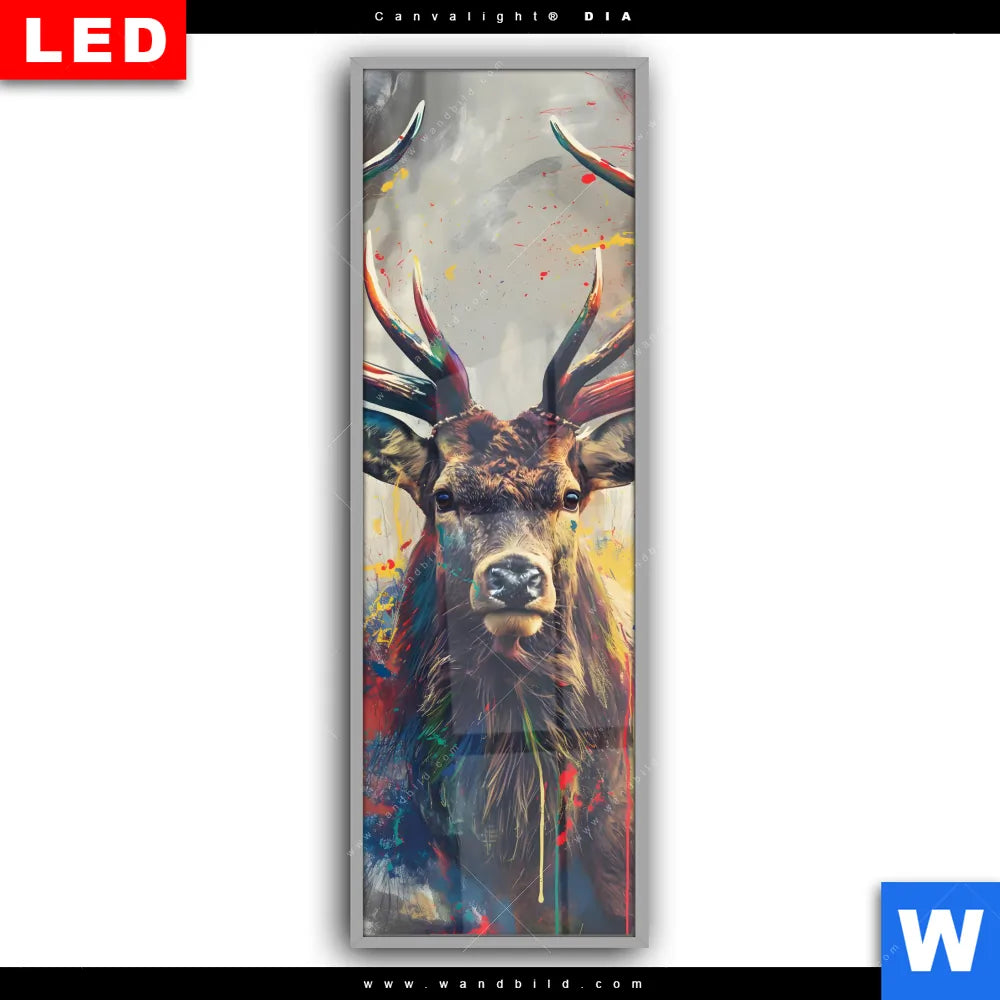 Canvalight® DIA Leuchtbild | Kreativer Hirsch mit Farbspritzern | Schmal