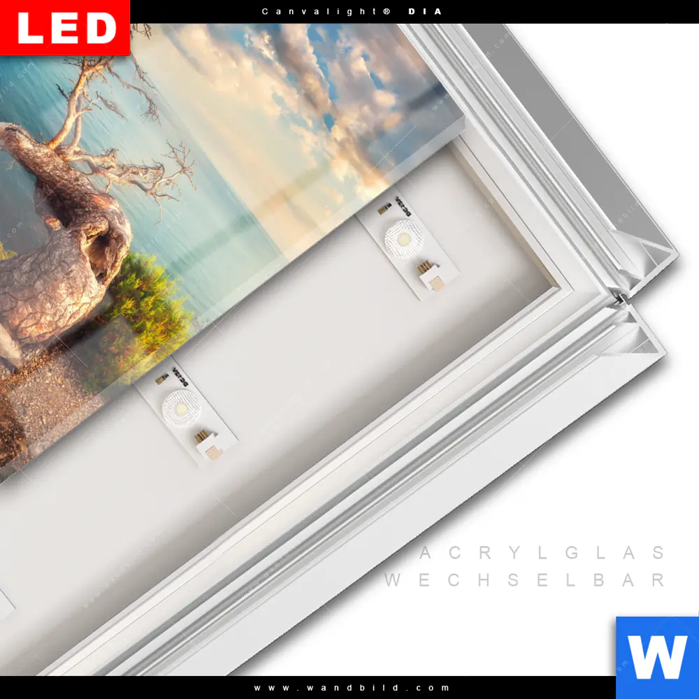 LED-Glasbild mit austauschbarem Acrylglas-Druck (Wechselbild)